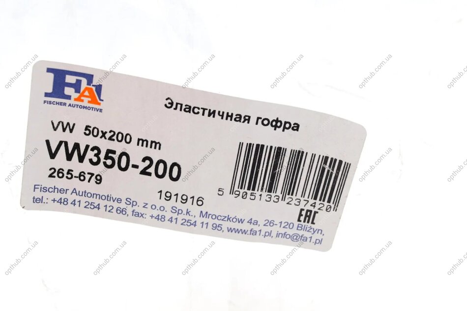 Гофра глушника VW Caddy III 1.9 TDI 04-10 (50x200) FA1 UA63 Fischer Automotive One (FA1)