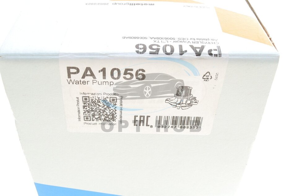 Матеріал крильчатки водяного насосу: Метал