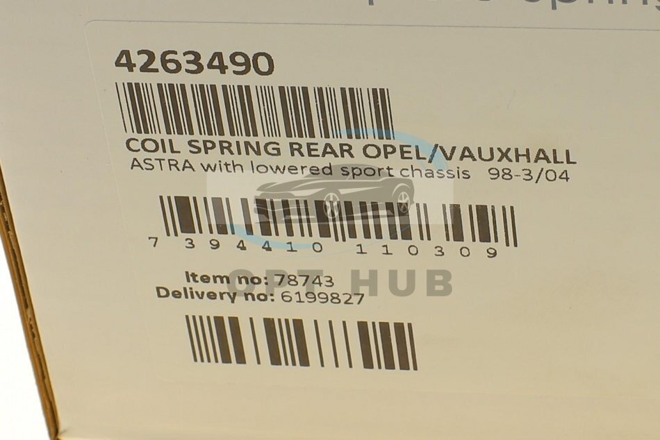 Пружини підвіски ПРУЖИНА ЗАДНЯЯ OPEL/VAUXHALL ASTRA С ЗАНИЖЕННОЙ СПОРТ ПОДВ 98-3/04