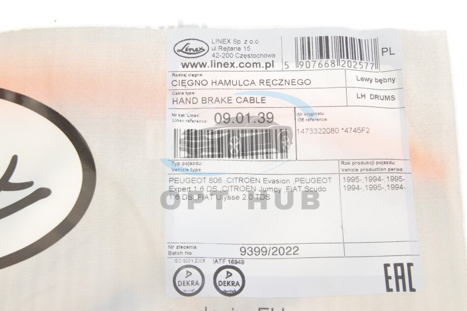 - LINEX 09.01.39 підходить до марок/моделей авто:
