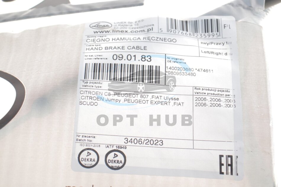 Трос ручника (задній) Fiat Scudo 07- (1614/1468mm) (opt-om) LINEX