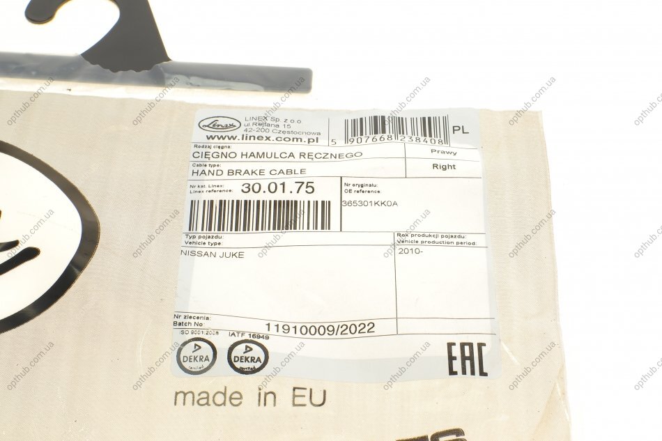 - LINEX 30.01.75 підходить до марок/моделей авто: