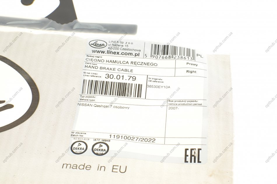 Трос ручника (задній) (R) Nissan Qashqai1.5/1.6/2.0 dCi 07-14 (1840mm) (opt-om) LINEX