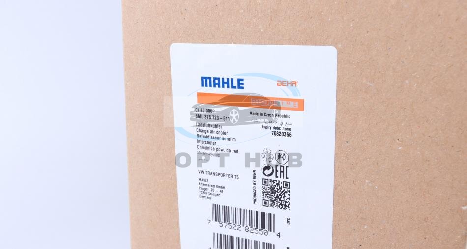 Радіатор інтеркулера VW T5 1.9/2.0/2.5TDI MAHLE UA63 MAHLE / KNECHT