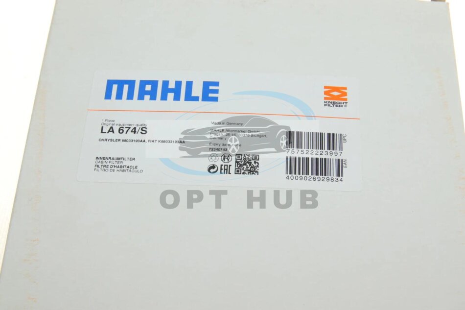 Аналоги "LA 674/S MAHLE / KNECHT":