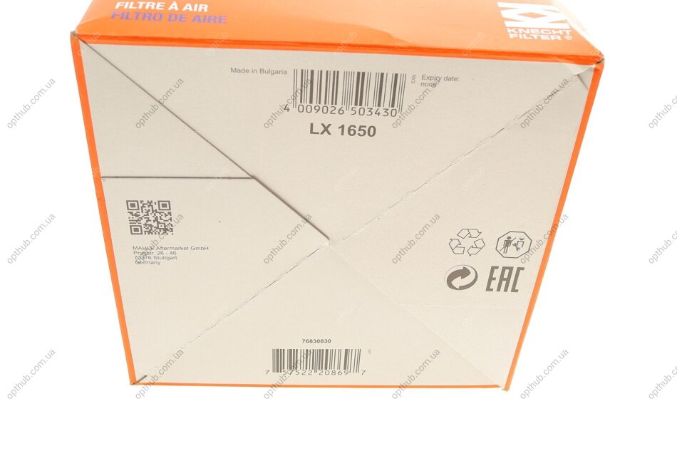 Аналоги "LX 1650 MAHLE / KNECHT":