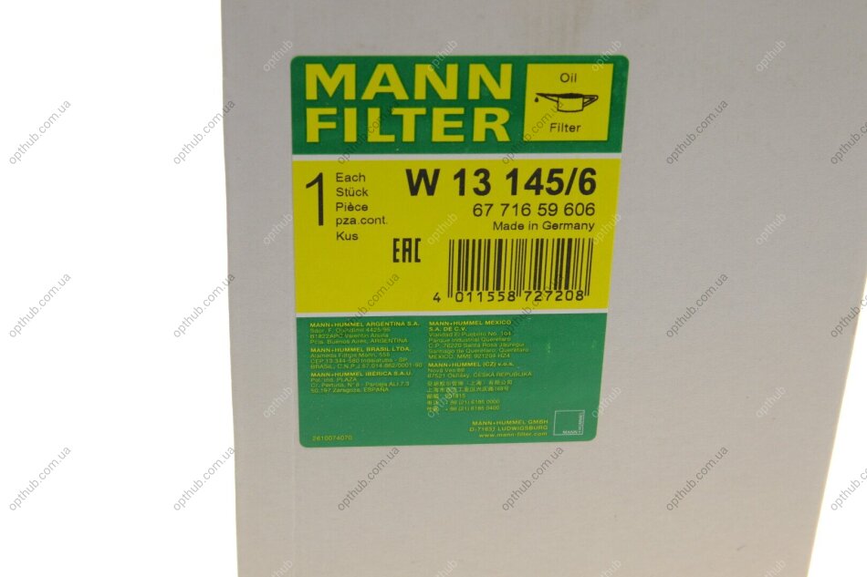 Фільтр масляний W13145/6 MANN