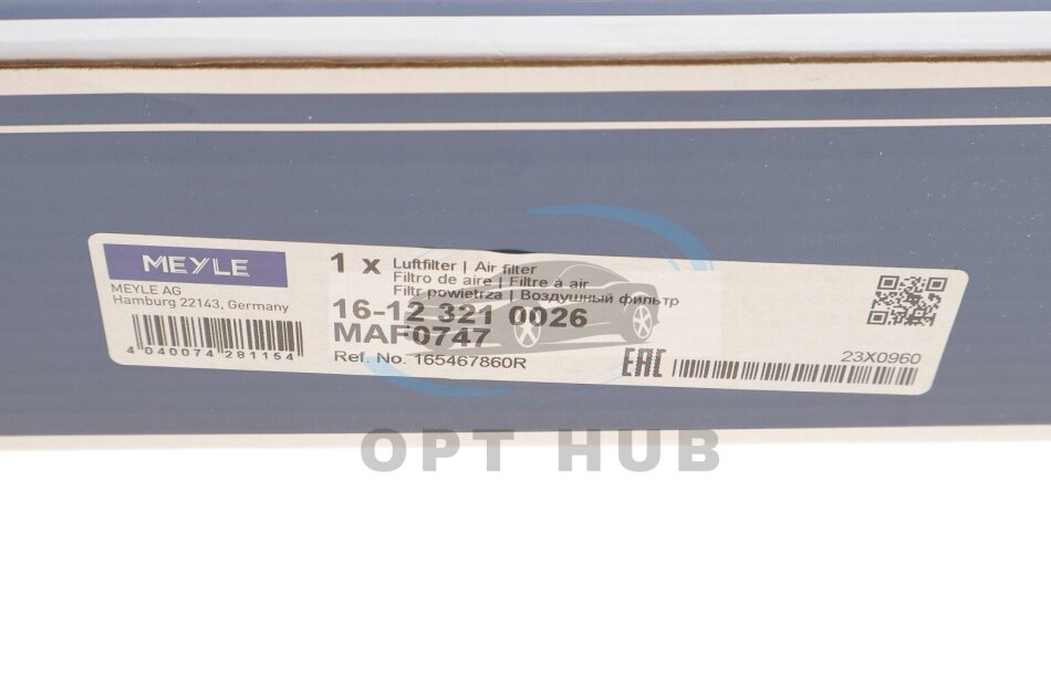 Фільтр повітряний Renault Scenic IV/Megane IV 1.2TCe 15- (opt-om) MEYLE