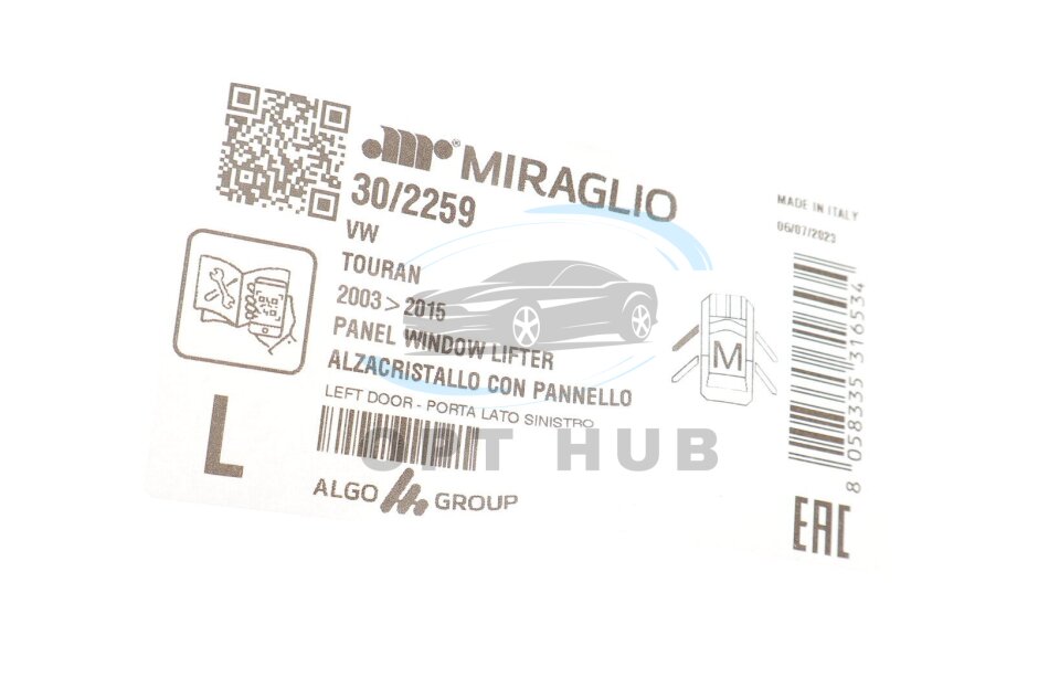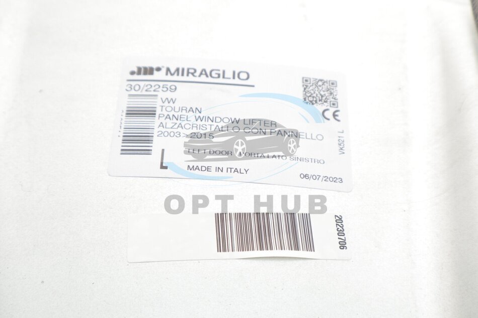 Склопідіймач (передній) VW Touran 03-15 (L) (електро) (без моторчика) (з пластиною) (opt-om) MIRAGLIO