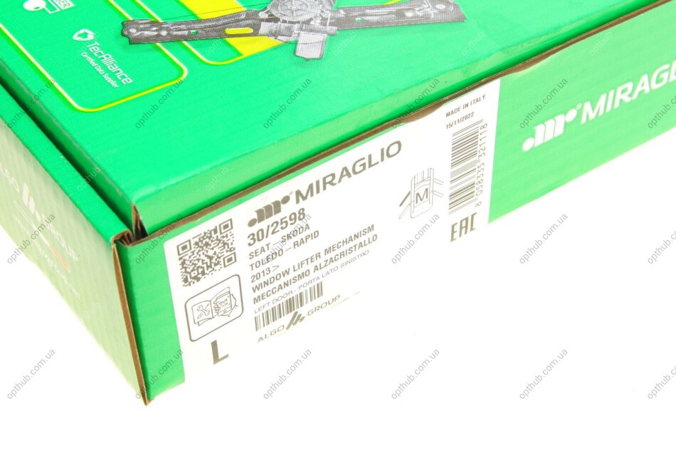Склопідіймач (передній) Skoda Rapid/Seat Toledo 12- (L) (електро)(без моторчика) (opt-om) MIRAGLIO
