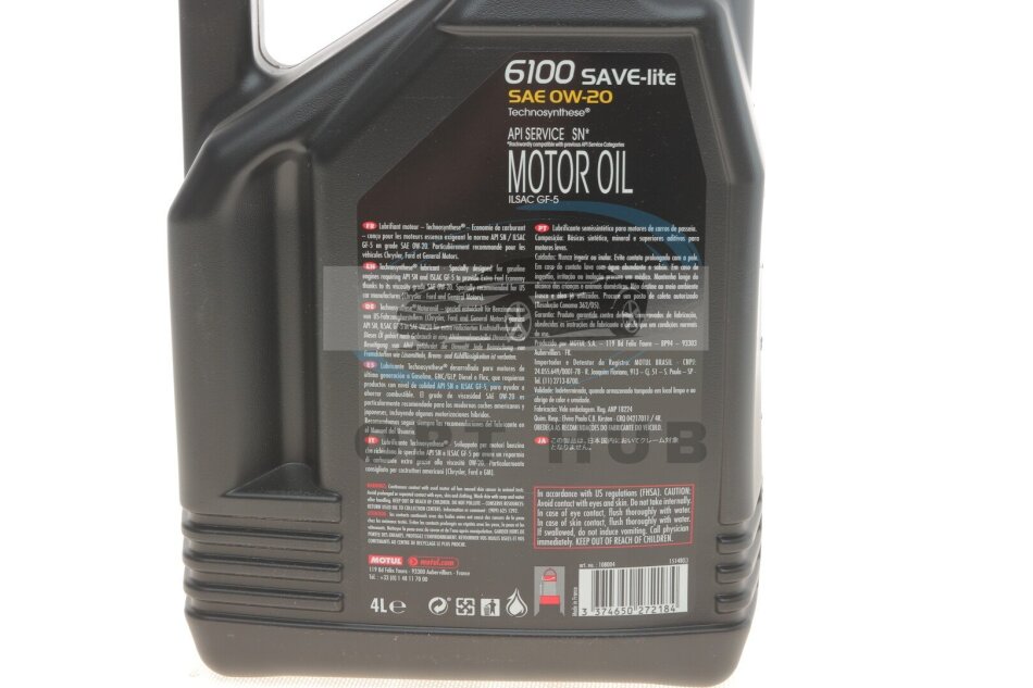 Олива 0W20 SAVE-lite SAE 6100 (4L) (dexos1/Ford 947-A) 108004 (opt-om) MOTUL