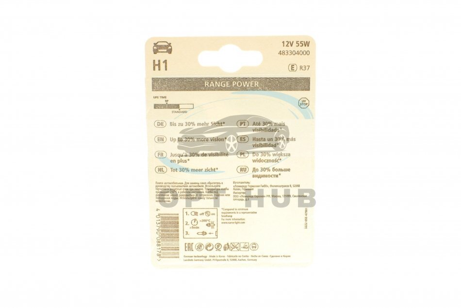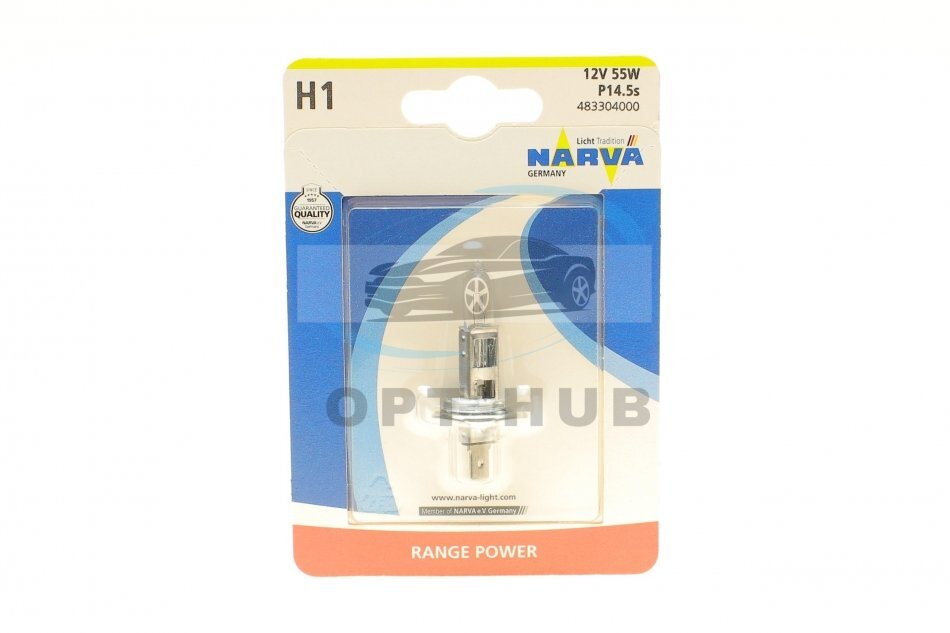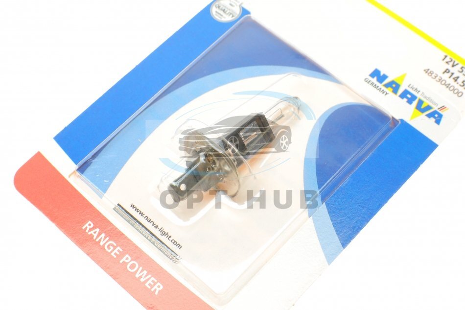 Автолампа H1 12V 55W P14.5s Range Power (+ 30%) (блістер/1шт) (opt-om) NARVA
