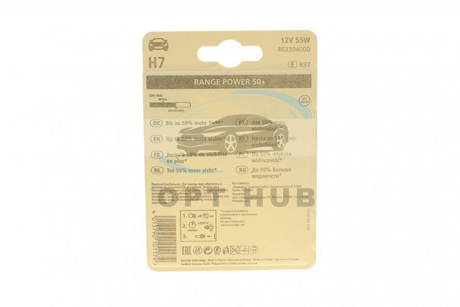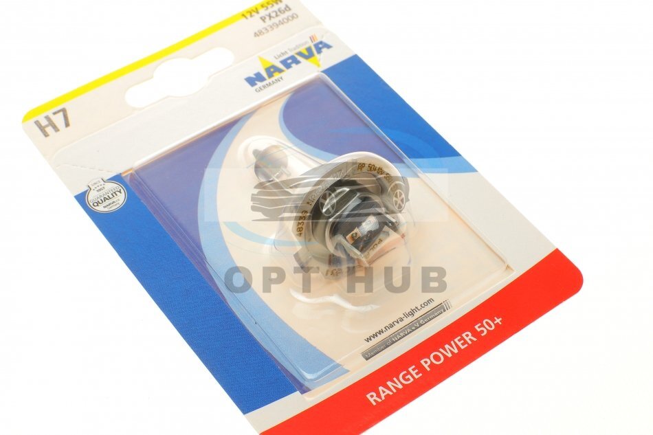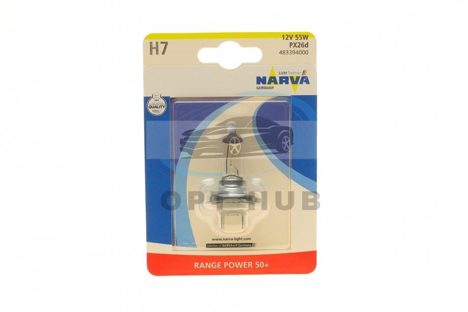 Автолампа H7 12V 55W PX26d Range Power 50+ (блістер/ 1шт) UA63 NARVA