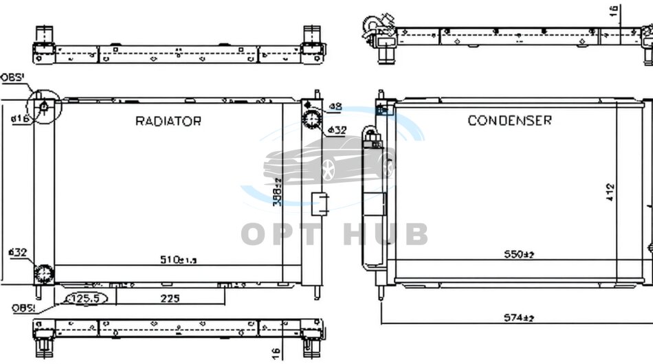 Розміри радіатора: 510 - 383 - 38