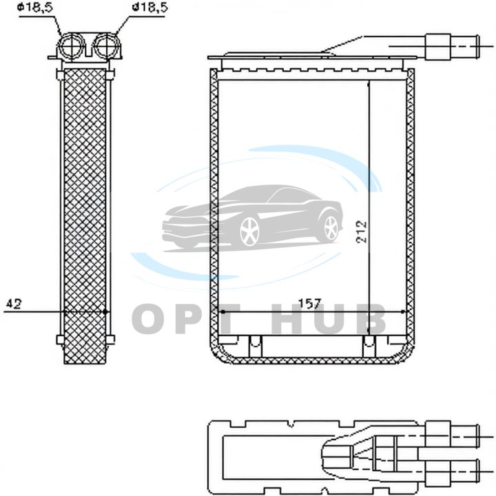 Розміри радіатора: 212 - 157 - 42