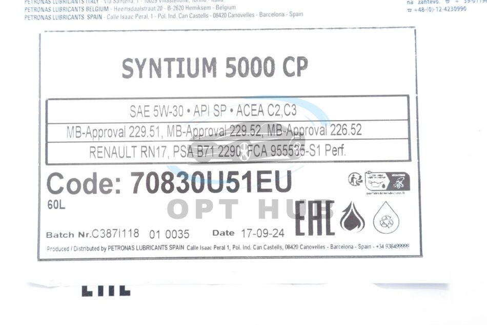 Олива моторна SYNTIUM 5000 CP 5W-30 SP (60L) Petronas