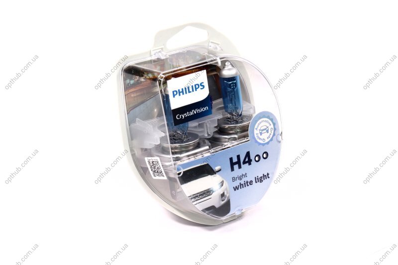 Лампа розжарювання H4 12V 60/55W P43t-38 Cristal Vision + 2x W5W 4300K (вир-во Philips)
