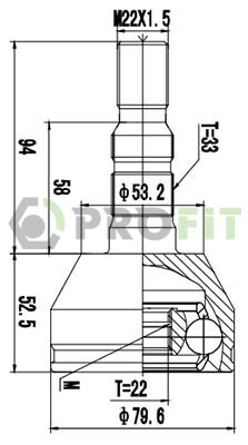 Внутрішнє зубчасте з'єднання з боку колеса: 22