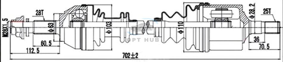 Піввісь ПРИВОДНОЙ ВАЛ К-Т CITROEN C25 81-94, FIAT DUCATO, PEUGEOT J5 82- ЛЕВ.