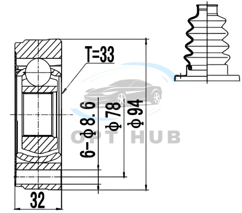 ШРКШ зі змазкою в комплекті ШАРНИРНИЙ КОМПЛЕКТ SKODA OCTAVIA 97-, VW GOLF IV 97- ВНУТР.