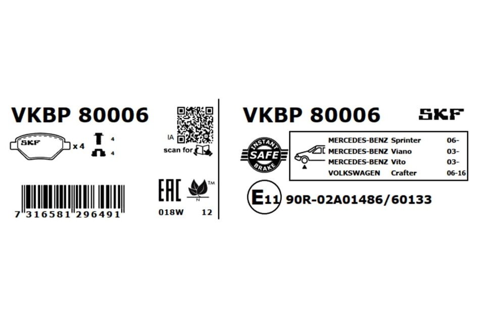 - SKF VKBP 80006 підходить до марок/моделей авто: