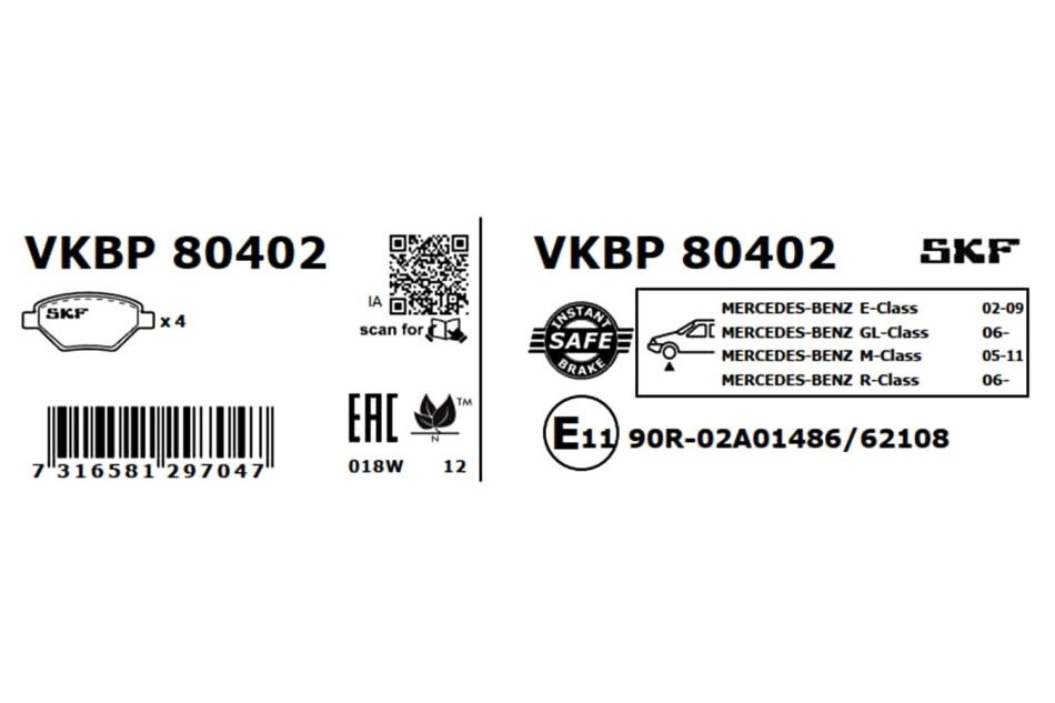 - SKF VKBP 80402 підходить до марок/моделей авто: