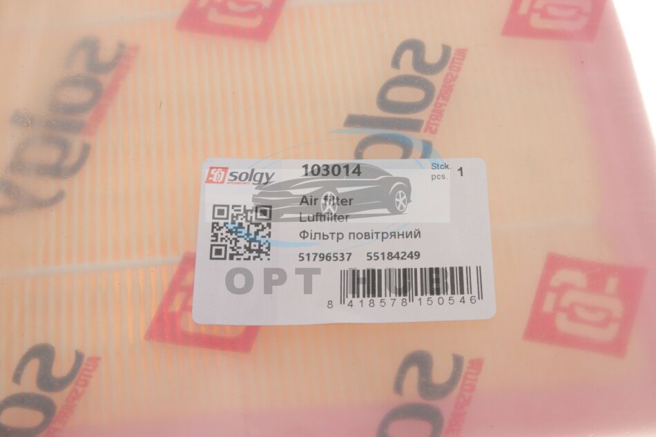 Фільтр повітряний Fiat Doblo 1.6-2.0JTD 10- (з поролоном) (без картонної упаковки) UA63 Solgy