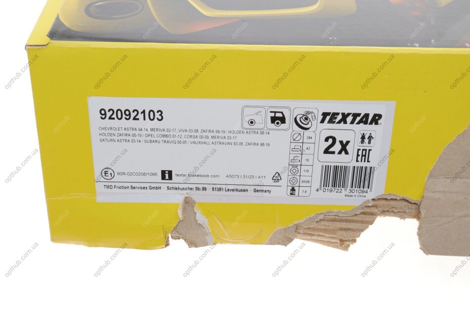 Диск гальмівний (задній) Opel Combo 1.7 04- (264x10) PRO UA63 TEXTAR