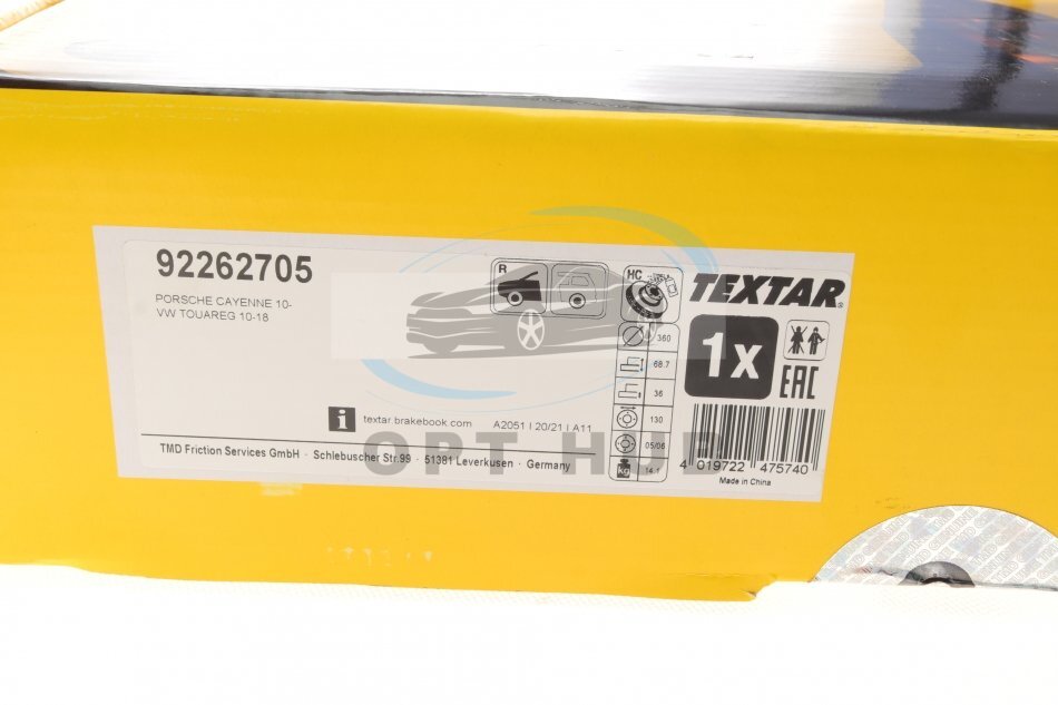 - TEXTAR 92262705 підходить до марок/моделей авто: