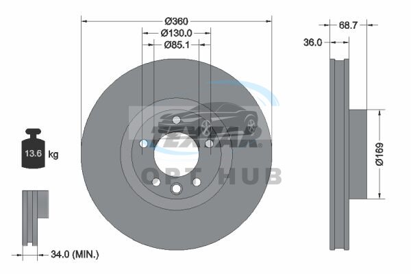 Товщина гальмівного диску (мм): 36