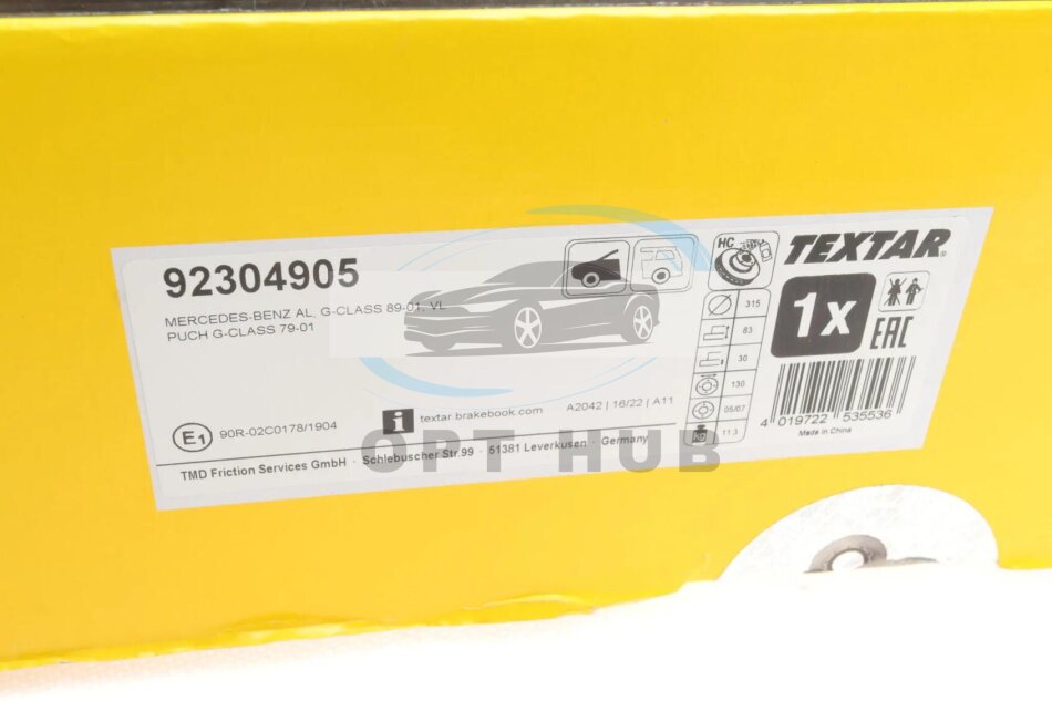 - TEXTAR 92304905 підходить до марок/моделей авто: