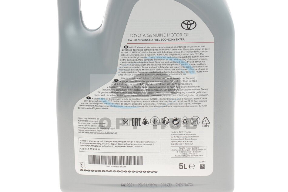 Олива моторна SAE 0W20 AFE (5 Liter) TOYOTA