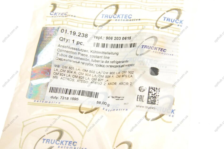 - TRUCKTEC 01.19.238 підходить до марок/моделей авто: