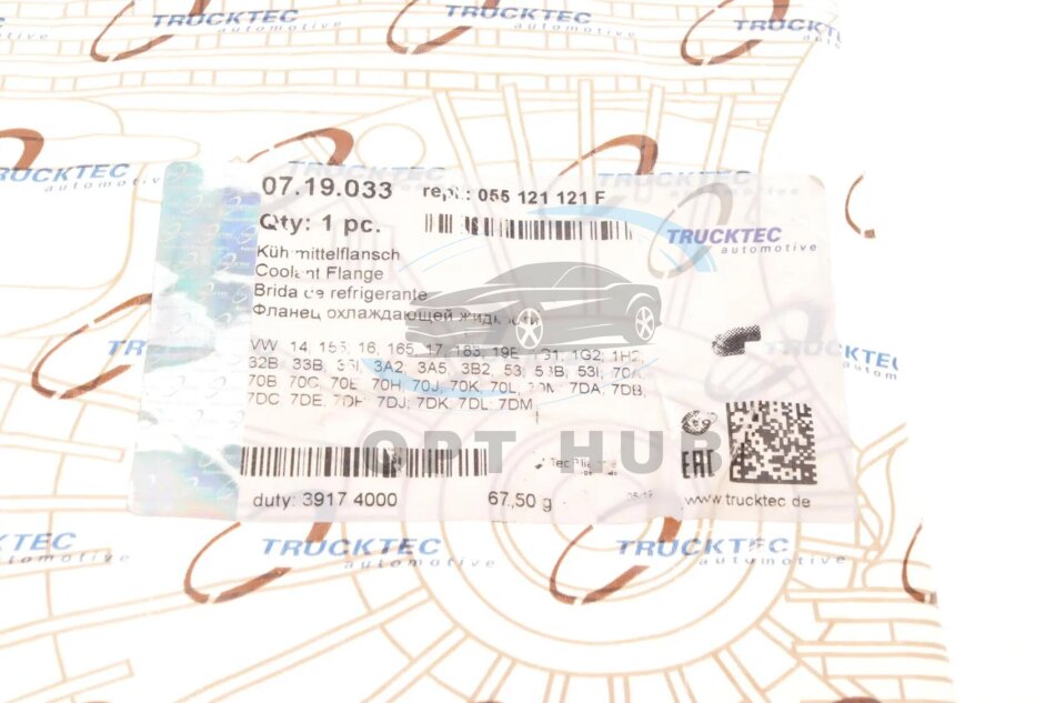 - TRUCKTEC 07.19.033 підходить до марок/моделей авто: