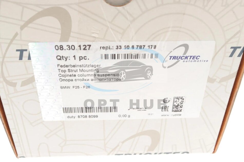 Подушка амортизатора (заднього) BMW X3 (F25)/X4 (F26) 10-18 B47/N20/N47/N55/N57 (opt-om) TRUCKTEC