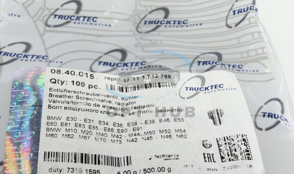 - TRUCKTEC 08.40.015 підходить до марок/моделей авто: