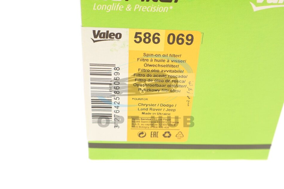 Фільтр масляний CHRYSLER VOYAGER III 2.4 I, CHRYSLER 300 C, CHRYSLER 300 M -ua Valeo