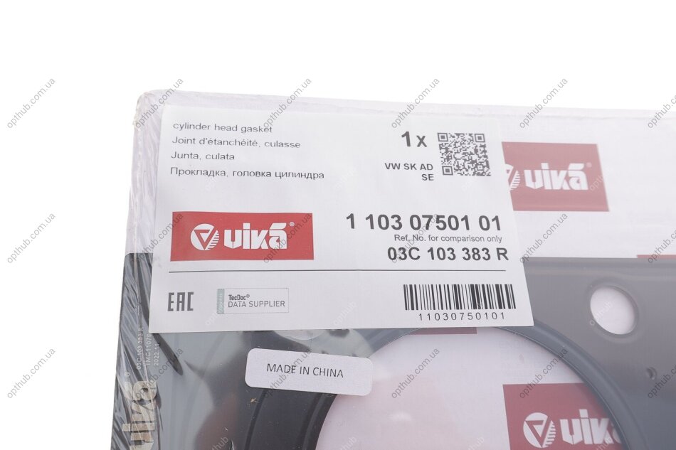 Прокладка головки блоку металева Skoda Fabia (11-15), Octavia (09-13,14-)/VW Jetta (06-14), Passat (08-15), Tiguan (08-) (11030750101) VIKA 11030750101 VIKA