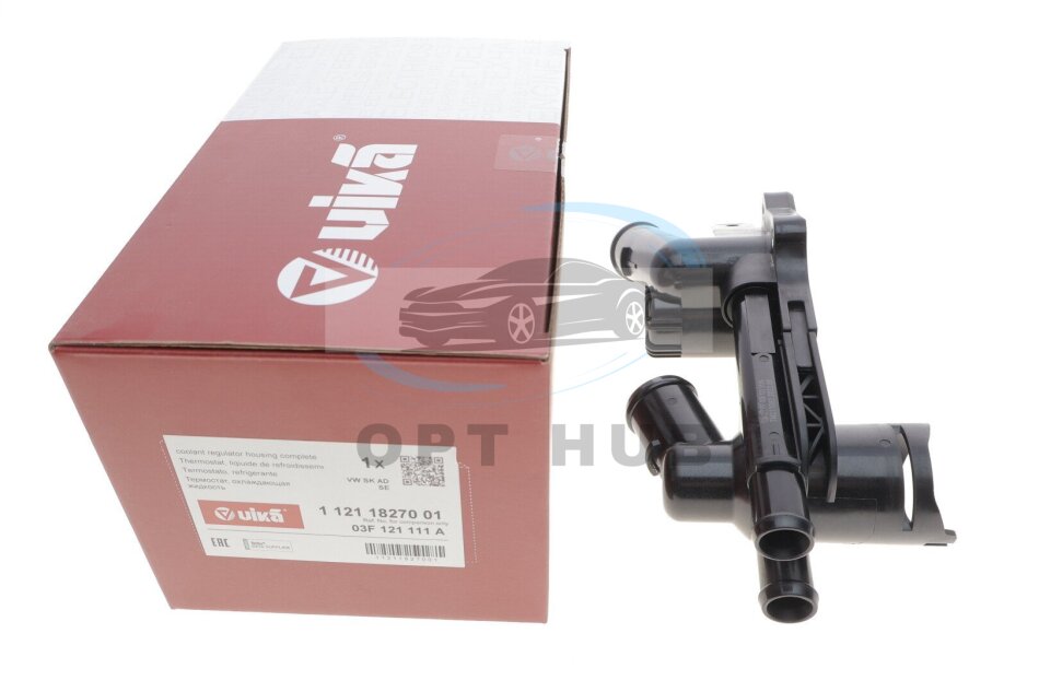Корпус термостата (OEM) подвійний 87/87град Skoda Fabia (11-15),Octavia (09-13)/VW Golf (09-13),Jetta (11-18),Polo (10-15) Vika