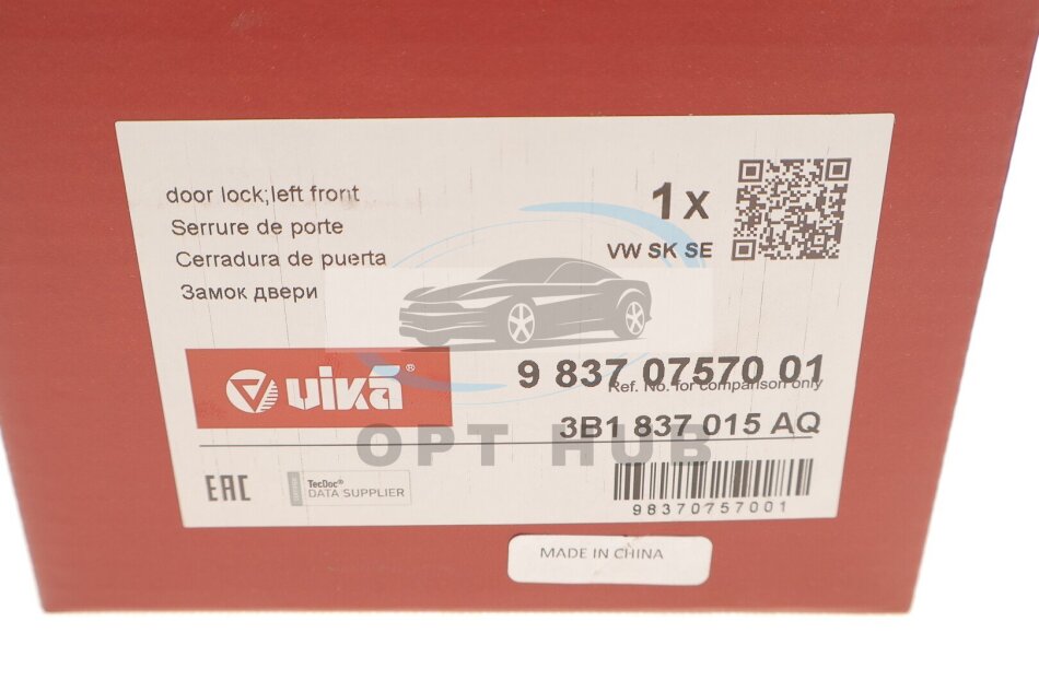 Замок двері передньої лівої Skoda Fabia (00-08)/VW Polo (02-10),T5 (03-16)/Seat Cordoba (03-09),Ibiza (02-10) (98370757001) VIKA 98370757001 VIKA