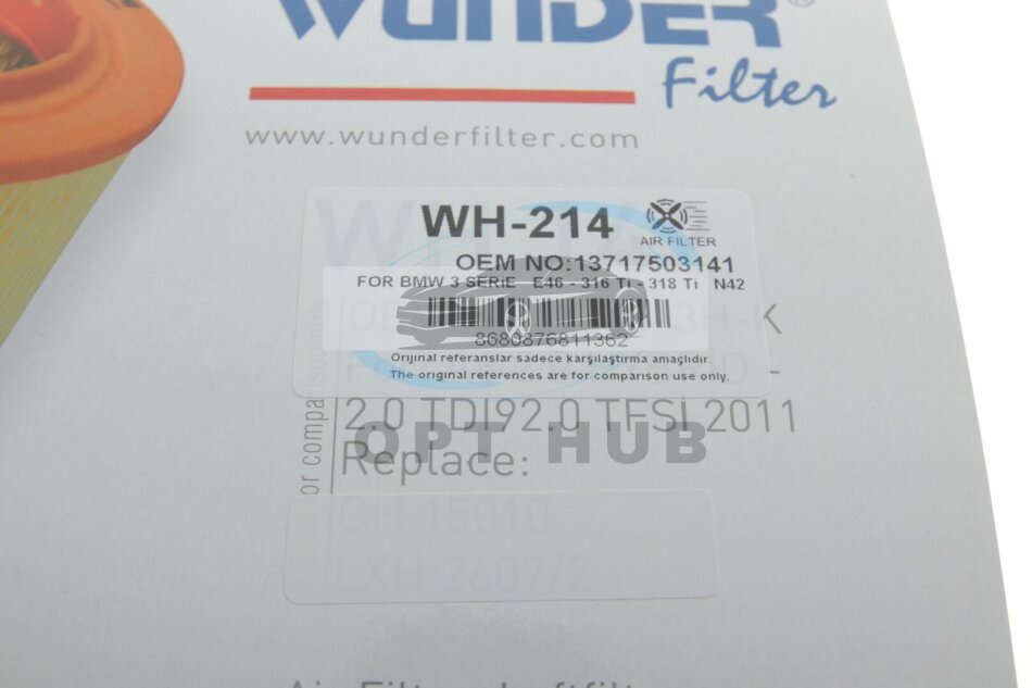 - WUNDER FILTER WH 214 підходить до марок/моделей авто:
