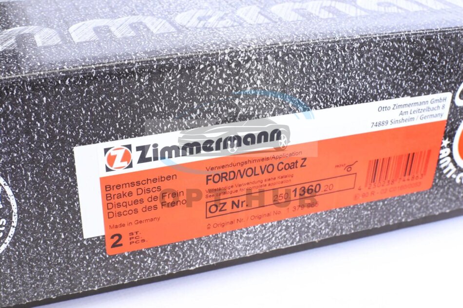 Диск гальмівний (передній) Range Rover Evoque/Freelander/Volvo S60/S80 11- (300x28) (з по (opt-om) ZIMMERMANN